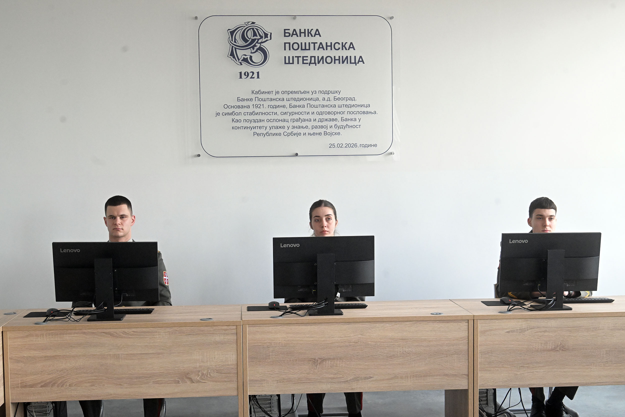 Свечаном отварању ове наставне просторије на Војној академији присуствовали су вршилац дужности помоћника министра одбране за буџет и финансије Горан Момчиловић, ректор Универзитета одбране бригадни генерал Бобан Ђоровић, извршни директор Банке Поштанска штедионица Бојан Кекић, као и представници Министарства одбране, Војне академије и Банке Поштанска штедионица.